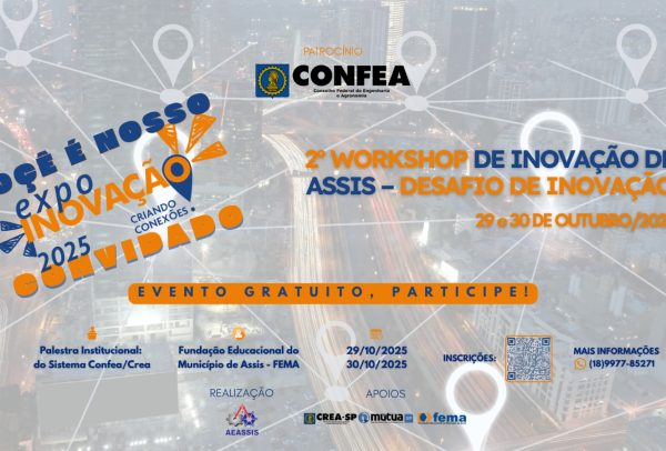 A Associação dos Engenheiros, Arquitetos e Agrônomos de Assis (AEASSIS) convida todos os profissionais, estudantes e interessados em inovação para o 1º Workshop de Inovação de Assis: Desafio de Inovação. O evento, que é gratuito, acontecerá nos dias 31 de outubro e 01 de novembro de 2024, das 18h00 às 22h30, no auditório do Bloco 12 da FEMA, em Assis/SP. Sobre o Workshop O Workshop de Inovação de Assis tem como objetivo promover a troca de conhecimentos e experiências em inovação, trazendo novas ideias e incentivando a criatividade entre os participantes. A abertura será marcada por uma Palestra Institucional do CONFEA, abordando temas relevantes para o desenvolvimento profissional e inovação. Local FEMA – Fundação Educacional do Município de Assis Endereço: Avenida Getúlio Vargas, 1200 – Vila Nova Santana, Assis/SP (Auditório do Bloco 12) Inscrições As inscrições são gratuitas e podem ser feitas através do link: Inscreva-se aqui Programação O workshop […]