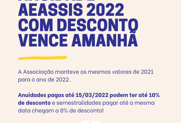 A anuidade da AEASSIS 2022 com desconto vence amanhã!